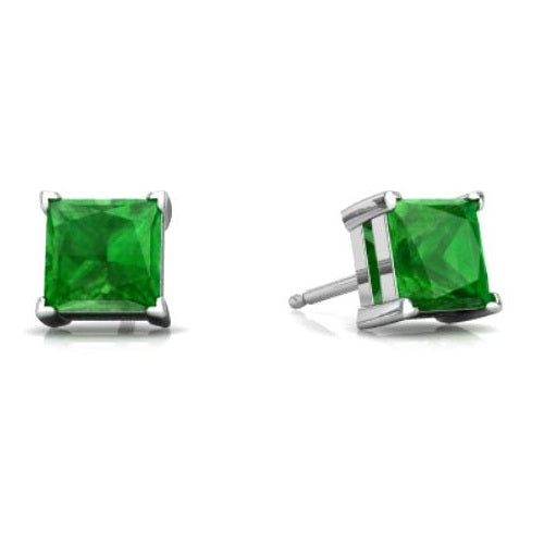 2 Ct Created Emerald Princess Cut Stud Earrings .925 Sterling Silver