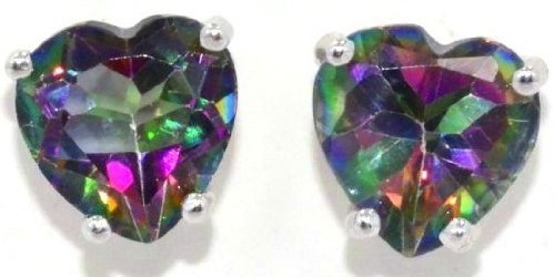 2 Ct Natural Mystic Topaz Heart Stud Earrings 14Kt White Gold