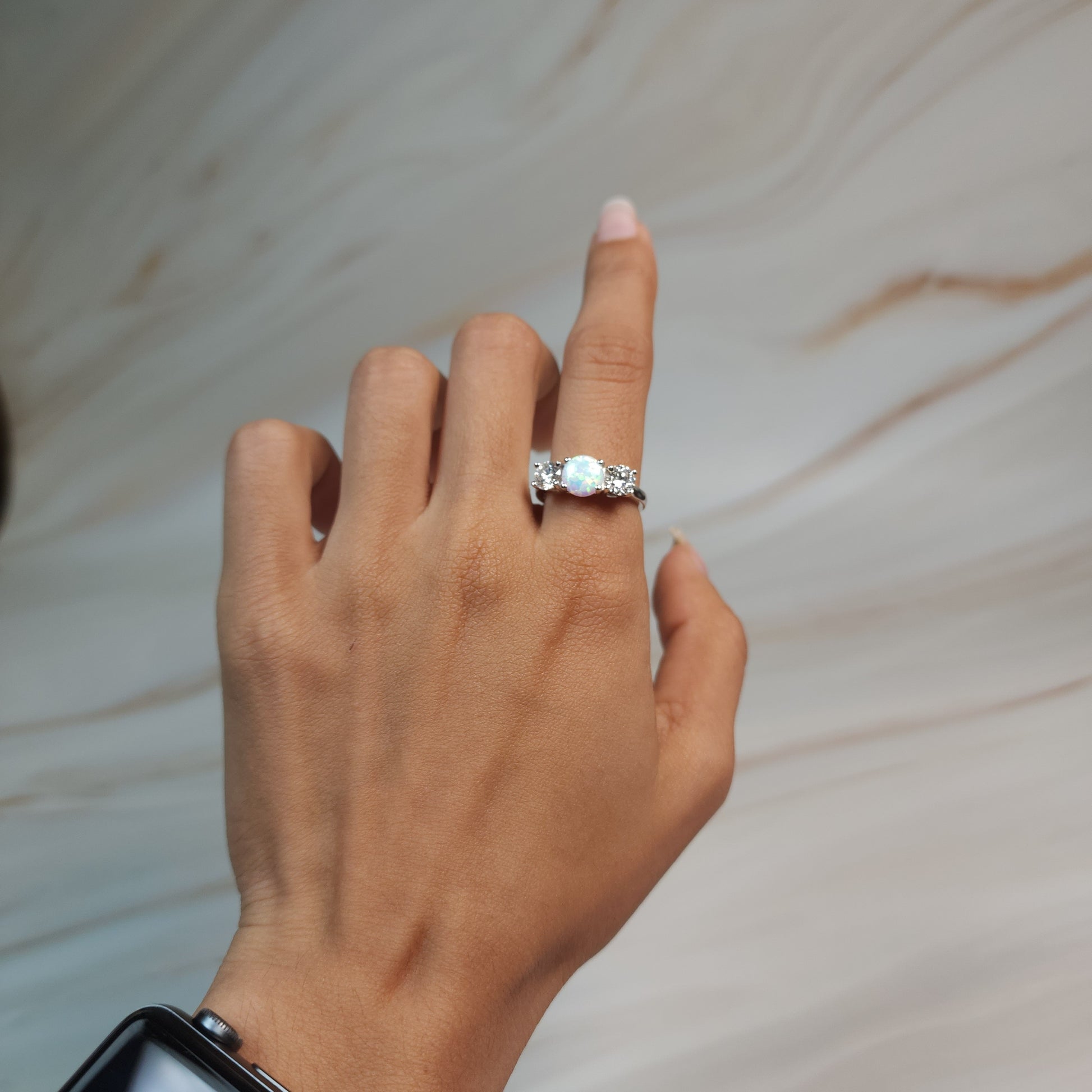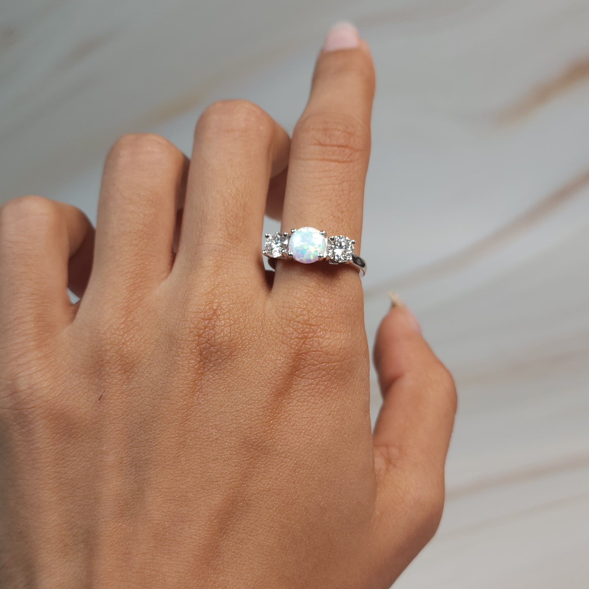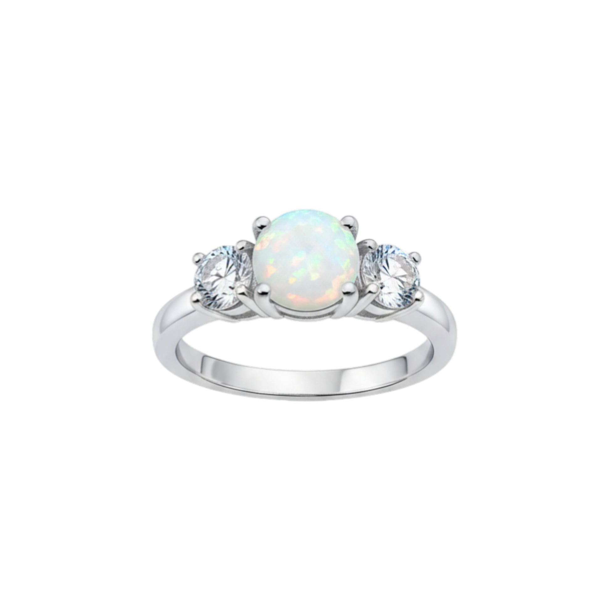 Created Opal & Lab Grown Diamond Round ring .925 Sterling Silver